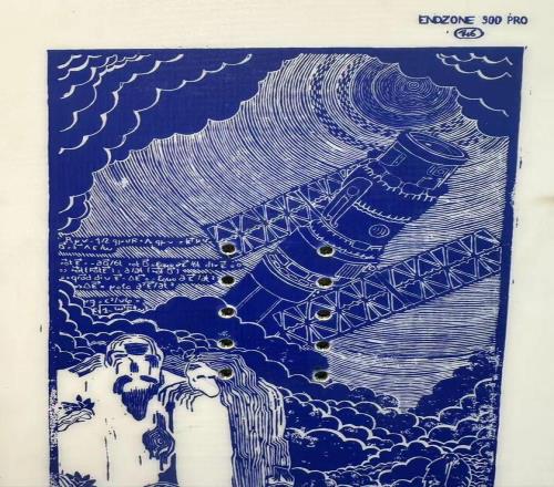 当时塔莉正在做很多版画方面的艺术尝试,我们一拍即合,决定就采用这种形式来呈现。设计过程中,卫星图案花了我们最多的时间,我执着于要一个写实的卫星,而塔莉则更看重艺术效果。经过无数轮尝试,我们最终呈现了一个满意的作品。板面上还有我喜欢的物理方程式,关于宇宙的放在了上半部分,关于河流的放在了下半部分。还加入了一些动物和文化元素。比如颜色上,就受到了中国瓷器蓝色的启发。
