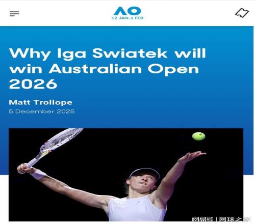 在2026赛季即将开启之前,澳网官方专门发文表达了对斯瓦泰克明年澳网夺冠的看好。