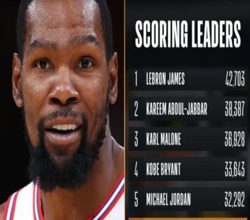 杜兰特总得分超诺维茨基升第6本赛季有望超乔丹